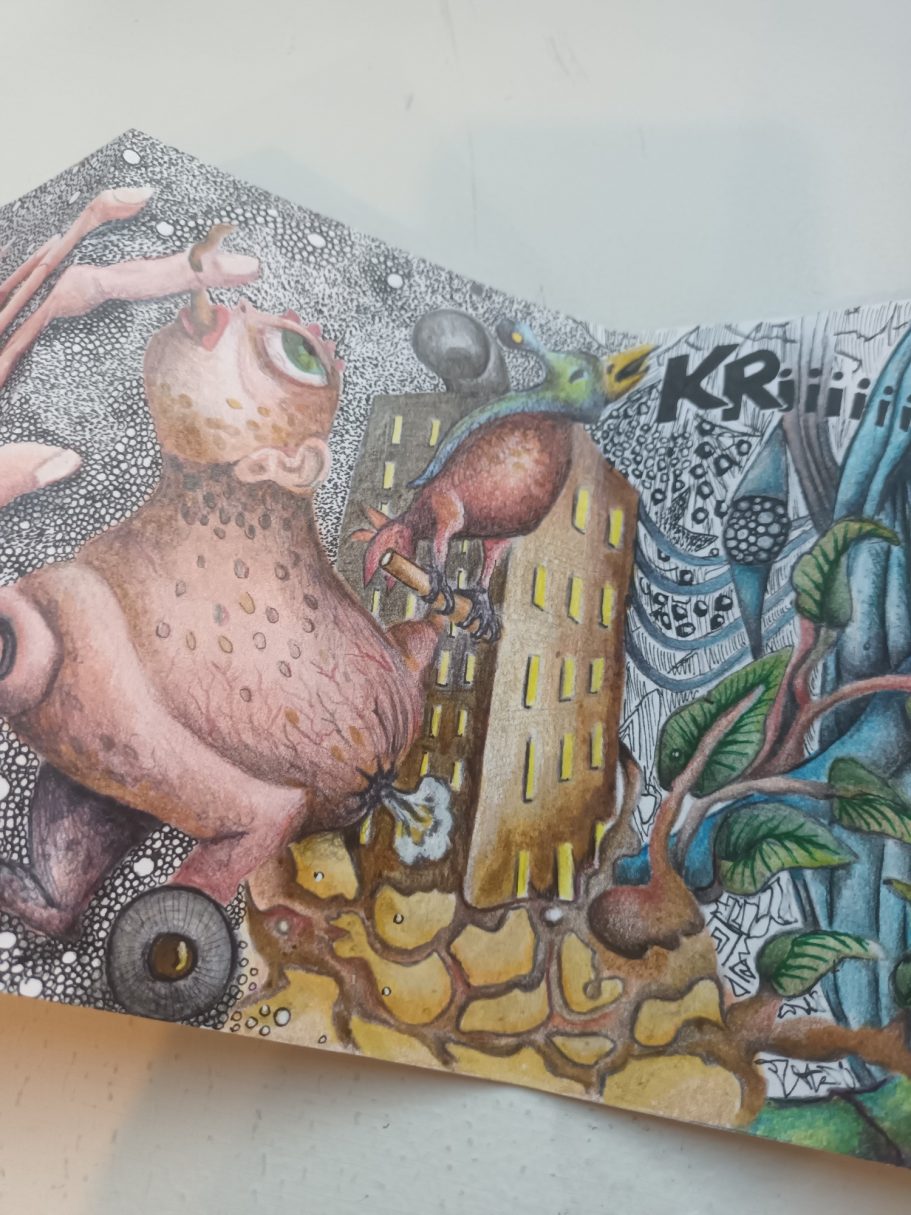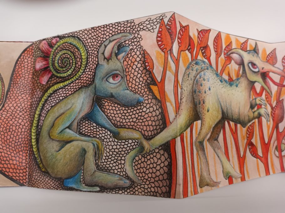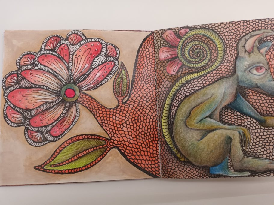 Mes carnets d'artiste sont le reflet de mon processus créatif. Plus qu'un simple carnet, c'est un support où se déroule le fruit de mon imaginaire, un espace d'expérimentation, d'idées... C'est un voyage imaginaire, c'est une danse frénétique, un boom de couleur.
