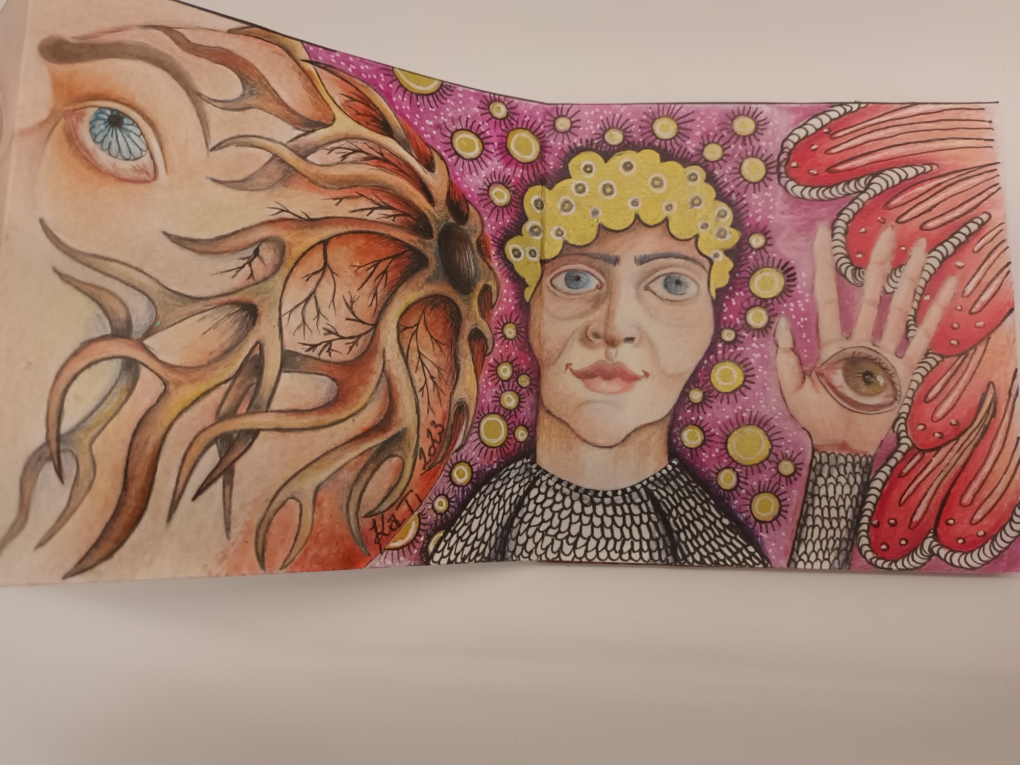 Mes carnets d'artiste sont le reflet de mon processus créatif. Plus qu'un simple carnet, c'est un support où se déroule le fruit de mon imaginaire, un espace d'expérimentation, d'idées... C'est un voyage imaginaire, c'est une danse frénétique, un boom de couleur.
